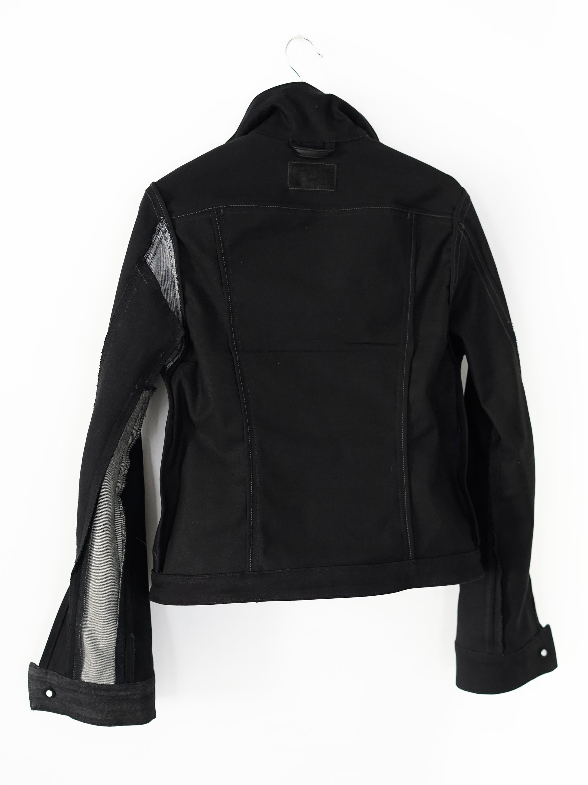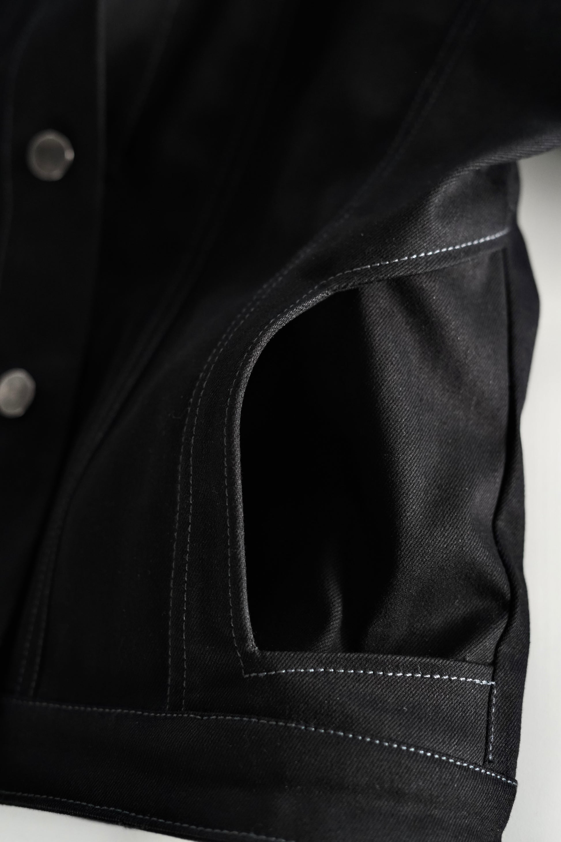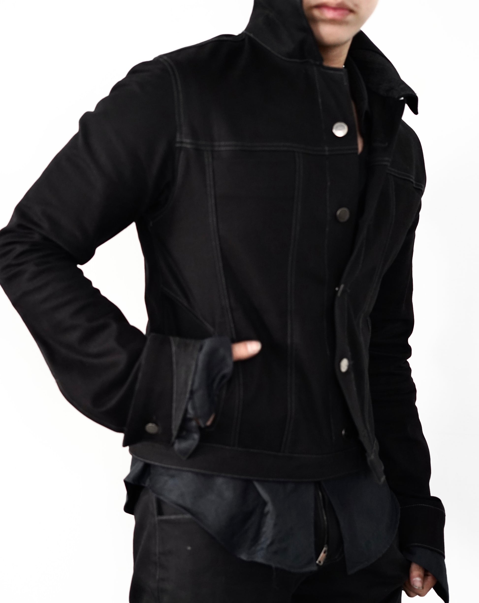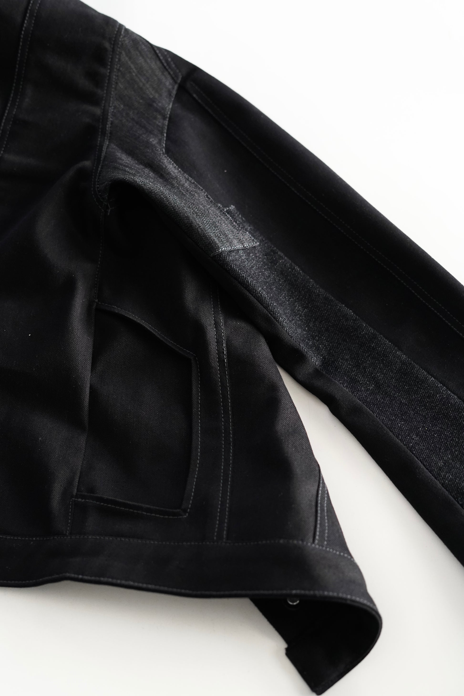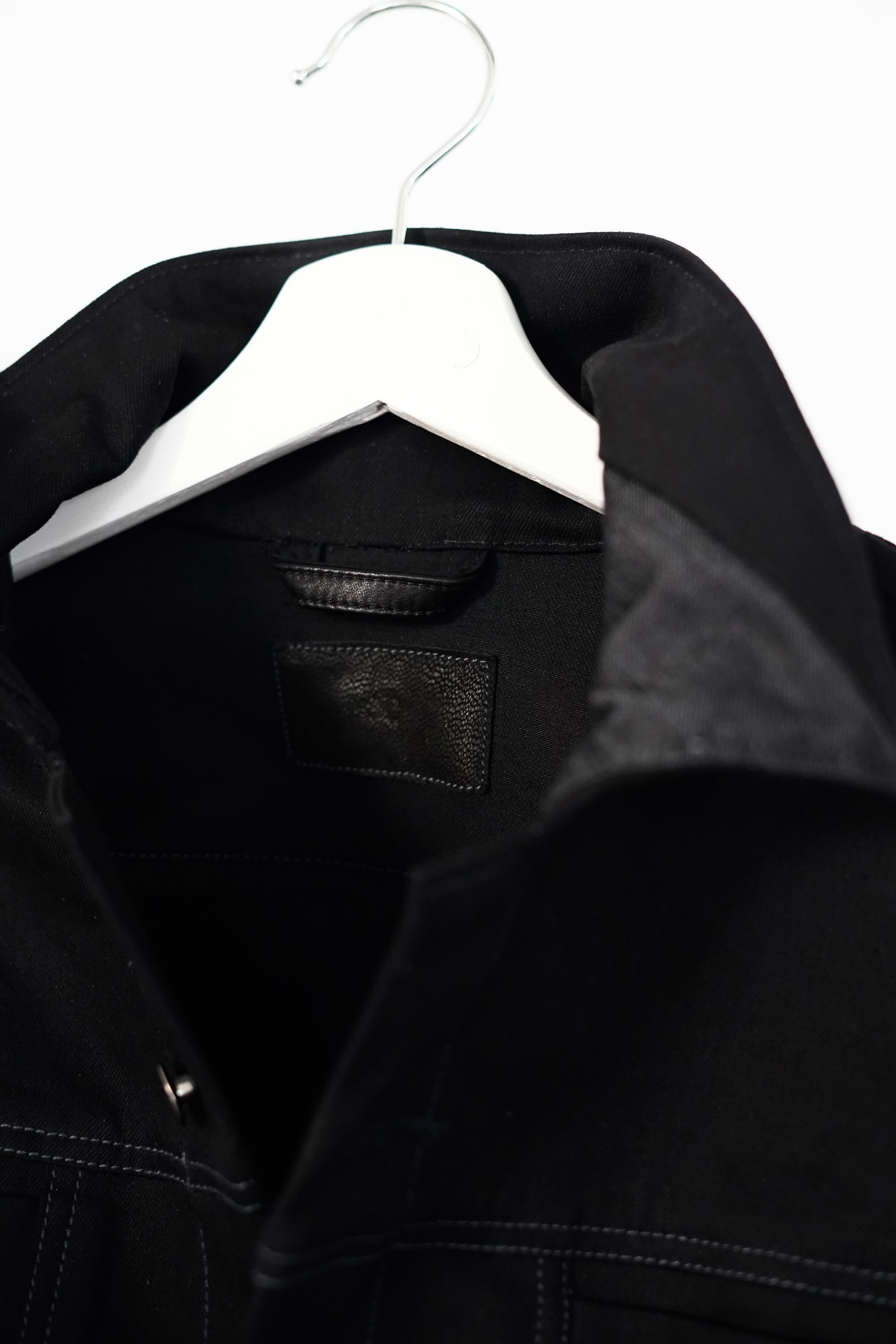 Redefined classic with edge. Designed with a tailored silhouette, balancing structure and movement, featuring a mix of denim textures for subtle contrast. The structured collar holds its shape or bends to your preference.