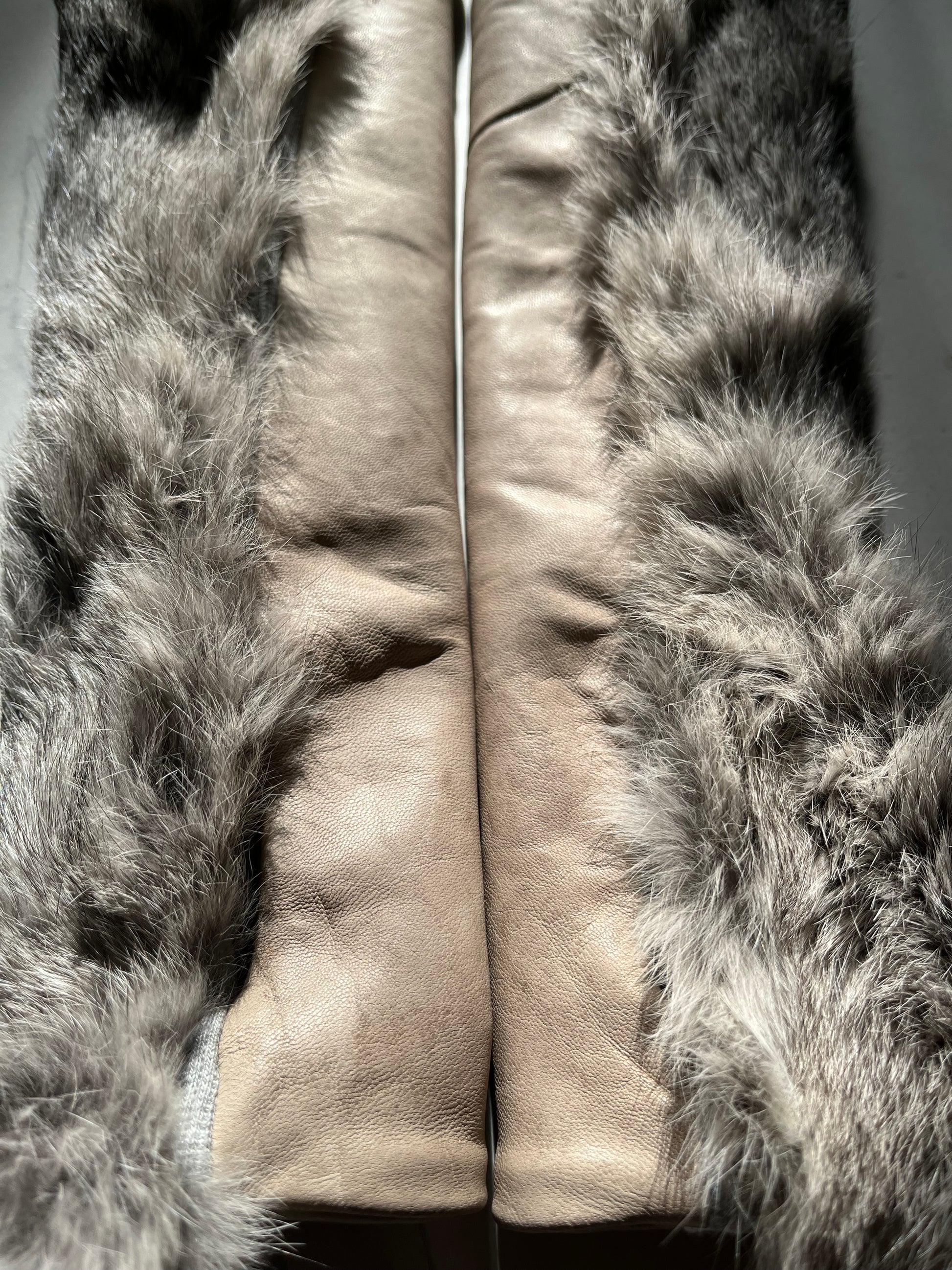 - Fluffy Rabbit Fur and Buttery Lambskin Outer Layer