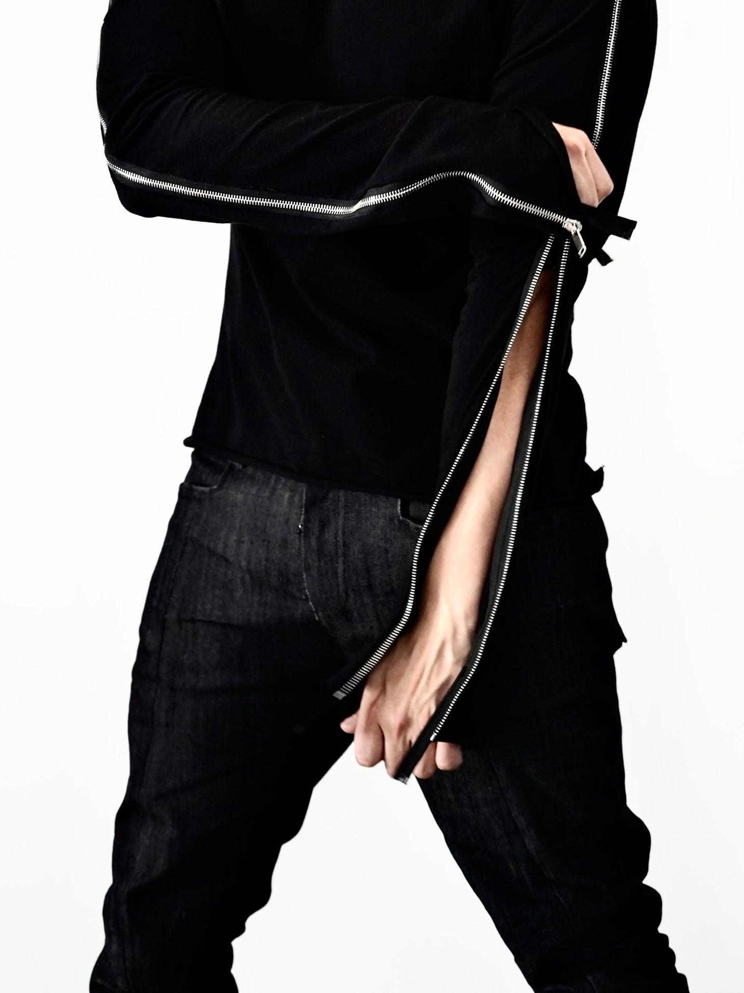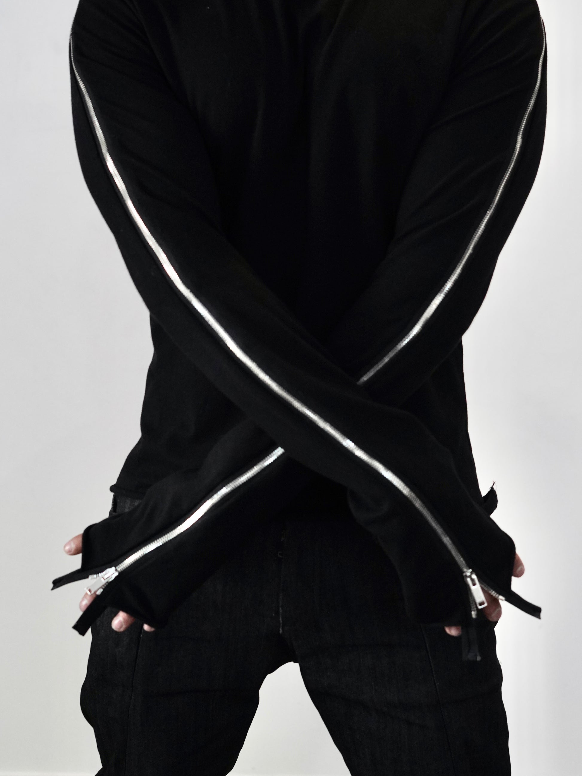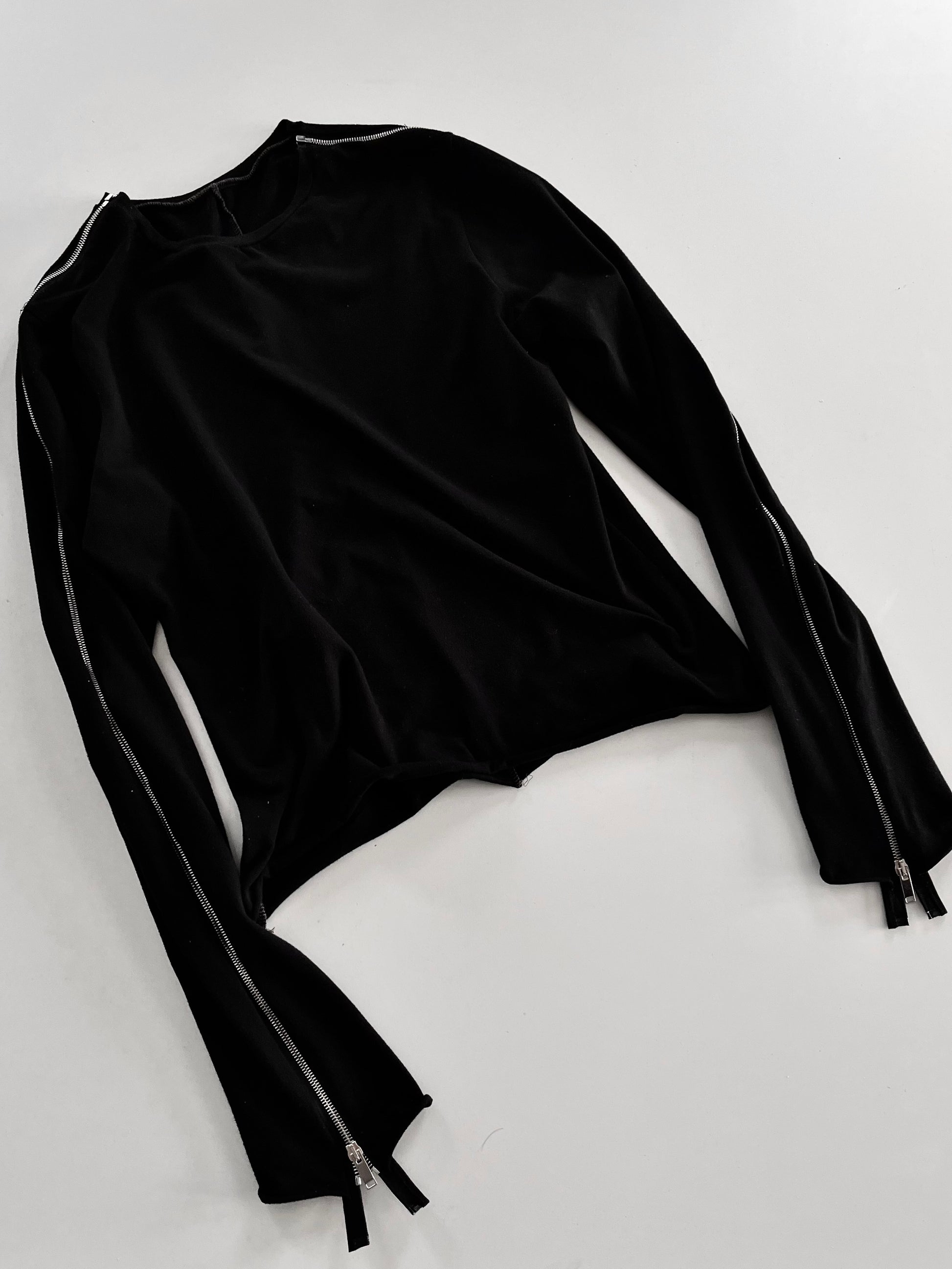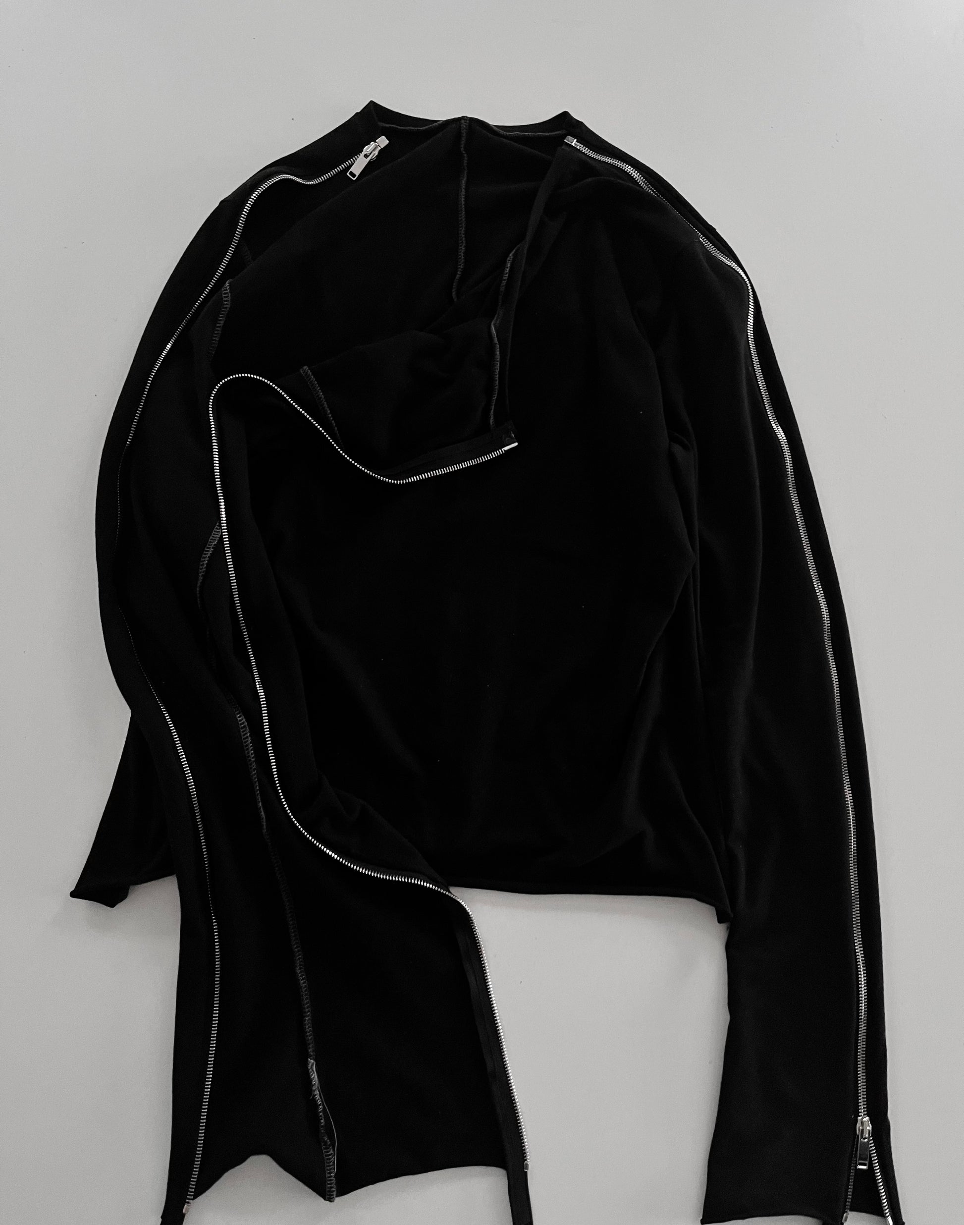 Black Longsleeve Shirt with zippers from shoulder to sleeve to adjust to your liking or situation